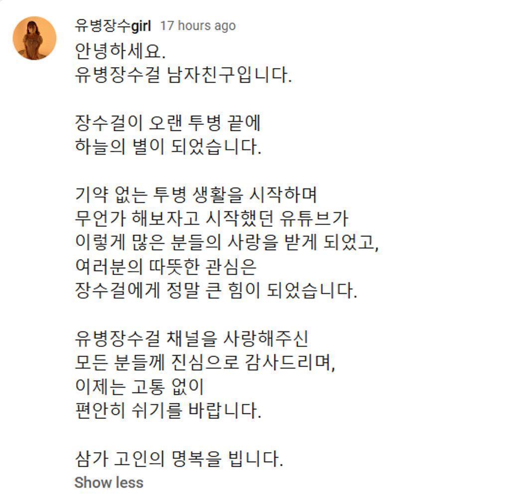 小金曾在多部韩剧(网络版短剧)出演女主角,出生年的她进入演艺圈,演技大受好评,是一颗冉冉上升的新星。3年前,她被医院确诊为“非透明细胞肾癌” 晚期,发现癌症之后她放下工作,与病魔顽强抗争了约 3年。